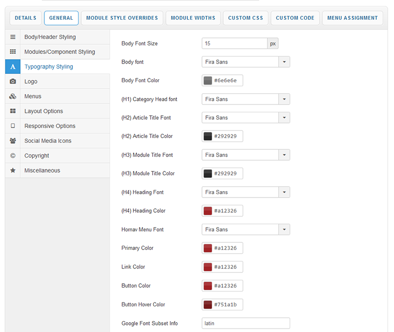 Your template parameters can be access directly from your Template Manager giving you access to a host of features including a selection of template styles, some colour choosers to help customise your template headers and links, a number of layout options and easy to use logo settings.